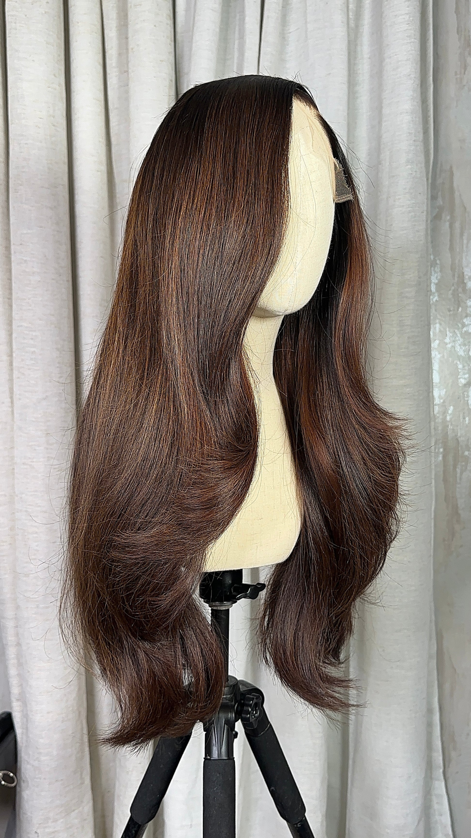 Color: Reddish Brown and Golden Highlights w/ Light Layers in the Front (No layers in the back)